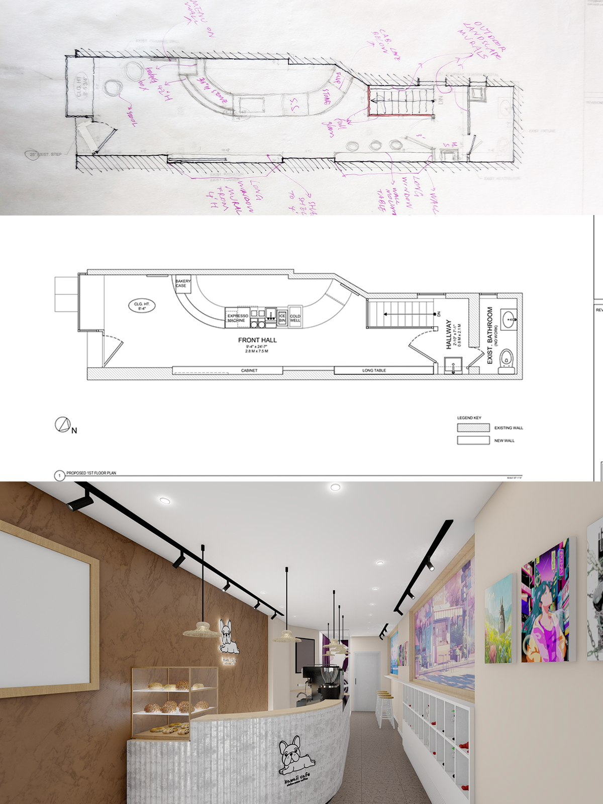Tested key decisions early to ensure the 300 SF layout could support both workflow and guest experience.