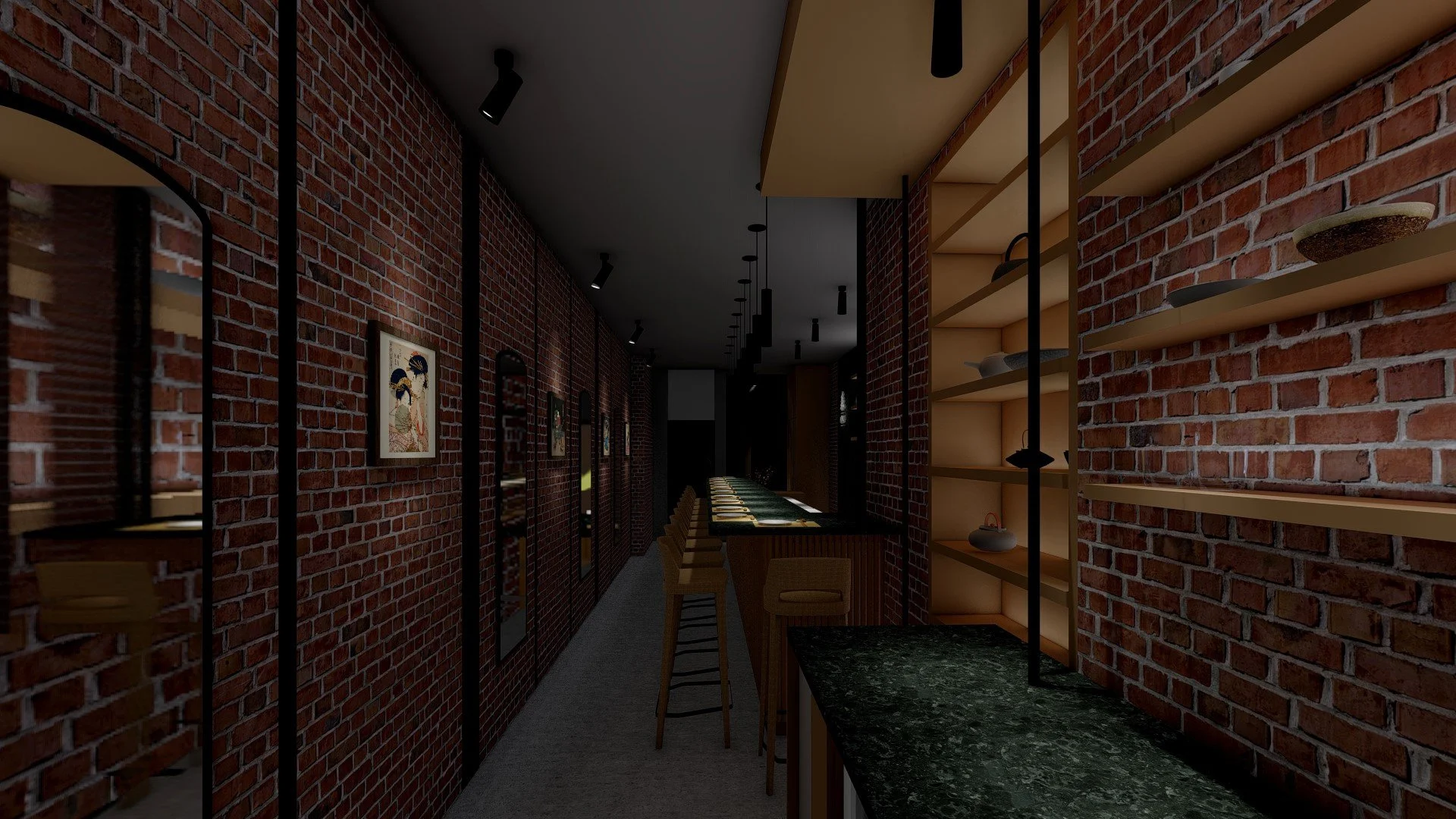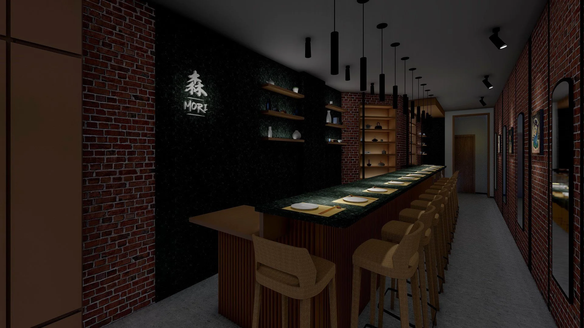Lighting, millwork, and seating built to exact tolerances.